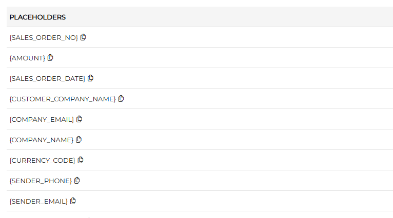 - A list of applicable fields will be displayed with a copy option. Copy the desired field and paste it into the subject or body where you want the data to appear.
